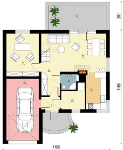 Graficzne opracowanie rzutów poglądowych widocznych na karcie projektu zostało wykonane przez Extradom.pl. Prezentowane przez Extradom.pl wizualizacje wykonane zostały przez autora projektu i należy poczytywać je jedynie za przykład i propozycję wykończenia, wizję architektoniczną autora projektu. Ostateczne wykończenie budynku może nastąpić na wiele sposobów. Szczegółowe rozwiązania zastosowane w oferowanej dokumentacji - w tym również ilość, lokalizacje i wygląd okien, drzwi, kominów - mogą w niewielkim stopniu różnić się od prezentowanej wizualizacji budynku.