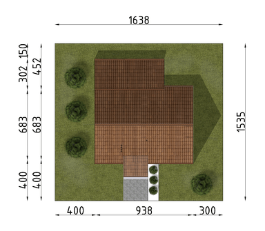 Graficzne opracowanie rzutów poglądowych widocznych na karcie projektu zostało wykonane przez Extradom.pl. Prezentowane przez Extradom.pl wizualizacje wykonane zostały przez autora projektu i należy poczytywać je jedynie za przykład i propozycję wykończenia, wizję architektoniczną autora projektu. Ostateczne wykończenie budynku może nastąpić na wiele sposobów. Szczegółowe rozwiązania zastosowane w oferowanej dokumentacji - w tym również ilość, lokalizacje i wygląd okien, drzwi, kominów - mogą w niewielkim stopniu różnić się od prezentowanej wizualizacji budynku.