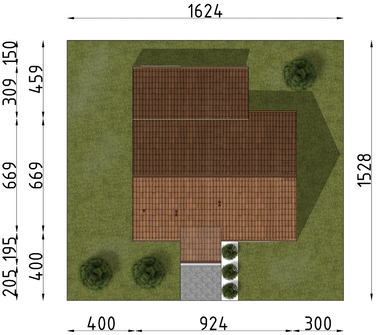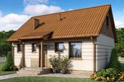 Graficzne opracowanie rzutów poglądowych widocznych na karcie projektu zostało wykonane przez Extradom.pl. Prezentowane przez Extradom.pl wizualizacje wykonane zostały przez autora projektu i należy poczytywać je jedynie za przykład i propozycję wykończenia, wizję architektoniczną autora projektu. Ostateczne wykończenie budynku może nastąpić na wiele sposobów. Szczegółowe rozwiązania zastosowane w oferowanej dokumentacji - w tym również ilość, lokalizacje i wygląd okien, drzwi, kominów - mogą w niewielkim stopniu różnić się od prezentowanej wizualizacji budynku.