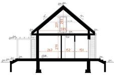 Materiały: Ściany zewnętrzne: drewniane z ociepleniem. strop: dźwigar dachowy konstrukcja dachu: drewniany: dźwigar dachowy pokrycie dachu: blachodachówka elewacja: tynk cienkowarstwowy, na fragmentach ścian deski. ogrzewanie - piec gazowy EP70 kWh/m2.rok Projekt zgodny z Wt2021 wentylacja grawitacyjna
