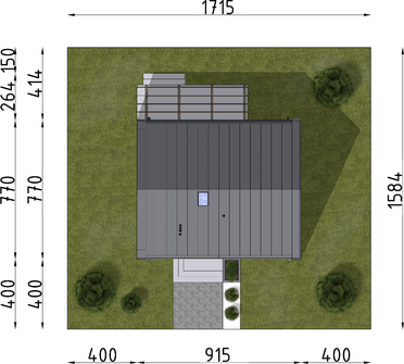 Graficzne opracowanie rzutów poglądowych widocznych na karcie projektu zostało wykonane przez Extradom.pl. Prezentowane przez Extradom.pl wizualizacje wykonane zostały przez autora projektu i należy poczytywać je jedynie za przykład i propozycję wykończenia, wizję architektoniczną autora projektu. Ostateczne wykończenie budynku może nastąpić na wiele sposobów. Szczegółowe rozwiązania zastosowane w oferowanej dokumentacji - w tym również ilość, lokalizacje i wygląd okien, drzwi, kominów - mogą w niewielkim stopniu różnić się od prezentowanej wizualizacji budynku.