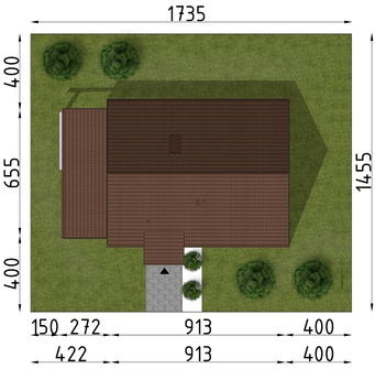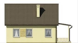 Graficzne opracowanie rzutów poglądowych widocznych na karcie projektu zostało wykonane przez Extradom.pl. Prezentowane przez Extradom.pl wizualizacje wykonane zostały przez autora projektu i należy poczytywać je jedynie za przykład i propozycję wykończenia, wizję architektoniczną autora projektu. Ostateczne wykończenie budynku może nastąpić na wiele sposobów. Szczegółowe rozwiązania zastosowane w oferowanej dokumentacji - w tym również ilość, lokalizacje i wygląd okien, drzwi, kominów - mogą w niewielkim stopniu różnić się od prezentowanej wizualizacji budynku.
