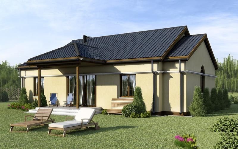 Graficzne opracowanie rzutów poglądowych widocznych na karcie projektu zostało wykonane przez Extradom.pl. Prezentowane przez Extradom.pl wizualizacje wykonane zostały przez autora projektu i należy poczytywać je jedynie za przykład i propozycję wykończenia, wizję architektoniczną autora projektu. Ostateczne wykończenie budynku może nastąpić na wiele sposobów. Szczegółowe rozwiązania zastosowane w oferowanej dokumentacji - w tym również ilość, lokalizacje i wygląd okien, drzwi, kominów - mogą w niewielkim stopniu różnić się od prezentowanej wizualizacji budynku.