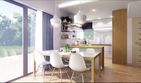 Graficzne opracowanie rzutów poglądowych widocznych na karcie projektu zostało wykonane przez Extradom.pl. Prezentowane przez Extradom.pl wizualizacje wykonane zostały przez autora projektu i należy poczytywać je jedynie za przykład i propozycję wykończenia, wizję architektoniczną autora projektu. Ostateczne wykończenie budynku może nastąpić na wiele sposobów. Szczegółowe rozwiązania zastosowane w oferowanej dokumentacji - w tym również ilość, lokalizacje i wygląd okien, drzwi, kominów - mogą w niewielkim stopniu różnić się od prezentowanej wizualizacji budynku.