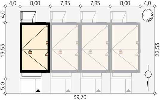 Graficzne opracowanie rzutów poglądowych widocznych na karcie projektu zostało wykonane przez Extradom.pl. Prezentowane przez Extradom.pl wizualizacje wykonane zostały przez autora projektu i należy poczytywać je jedynie za przykład i propozycję wykończenia, wizję architektoniczną autora projektu. Ostateczne wykończenie budynku może nastąpić na wiele sposobów. Szczegółowe rozwiązania zastosowane w oferowanej dokumentacji - w tym również ilość, lokalizacje i wygląd okien, drzwi, kominów - mogą w niewielkim stopniu różnić się od prezentowanej wizualizacji budynku.