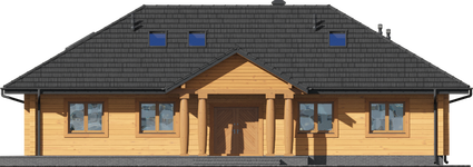 Graficzne opracowanie rzutów poglądowych widocznych na karcie projektu zostało wykonane przez Extradom.pl. Prezentowane przez Extradom.pl wizualizacje wykonane zostały przez autora projektu i należy poczytywać je jedynie za przykład i propozycję wykończenia, wizję architektoniczną autora projektu. Ostateczne wykończenie budynku może nastąpić na wiele sposobów. Szczegółowe rozwiązania zastosowane w oferowanej dokumentacji - w tym również ilość, lokalizacje i wygląd okien, drzwi, kominów - mogą w niewielkim stopniu różnić się od prezentowanej wizualizacji budynku.