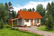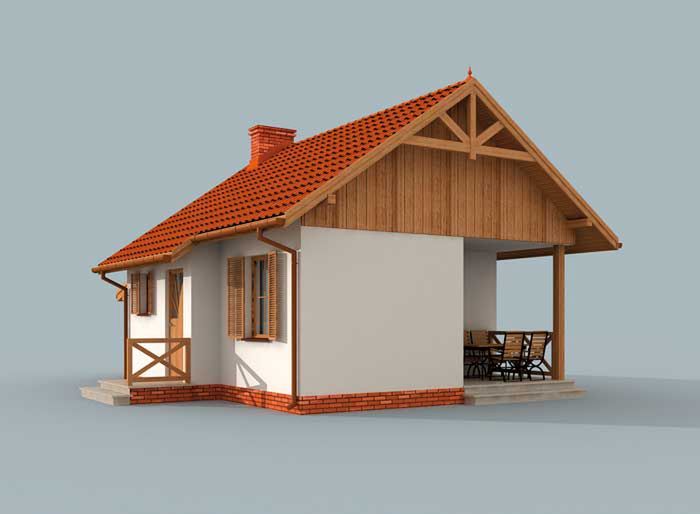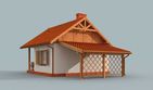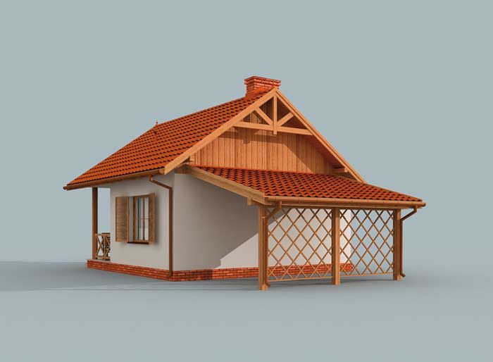 Ściany zewnętrzne murowane grubości 30 cm, działowe gr. 12 cm. Konstrukcja więźby dachowej drewniana, pokrycie dachówka ceramiczna. Istnieje możliwość adaptacji obiektu na budynek całoroczny. Projekt dostępny także w technologii szkieletowej. O cenę projektu w wersji całorocznej zapytaj naszego Doradcę.