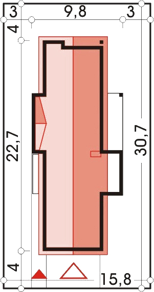 Fundamenty: betonowe. Ściany zewnętrzne: gazobeton 24 cm + styropian 14 cm. Ściany wewnętrzne: bloczki gazobetonowe 24 cm. Strop: gęstożebrowy Teriva I. Pokrycie dachowe: dachówka ceramiczna.