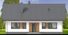 Graficzne opracowanie rzutów poglądowych widocznych na karcie projektu zostało wykonane przez Extradom.pl. Prezentowane przez Extradom.pl wizualizacje wykonane zostały przez autora projektu i należy poczytywać je jedynie za przykład i propozycję wykończenia, wizję architektoniczną autora projektu. Ostateczne wykończenie budynku może nastąpić na wiele sposobów. Szczegółowe rozwiązania zastosowane w oferowanej dokumentacji - w tym również ilość, lokalizacje i wygląd okien, drzwi, kominów - mogą w niewielkim stopniu różnić się od prezentowanej wizualizacji budynku.