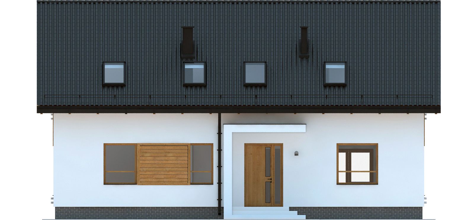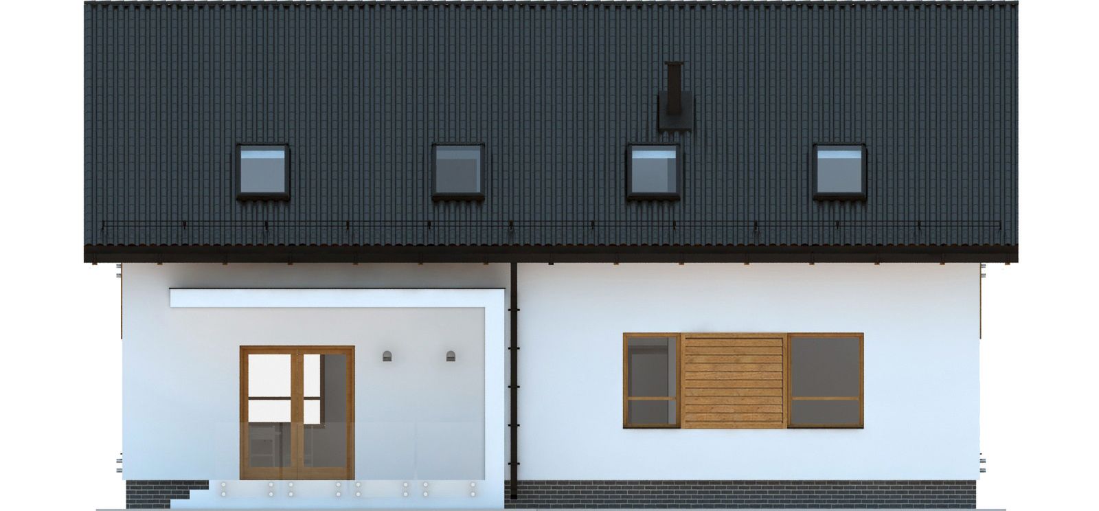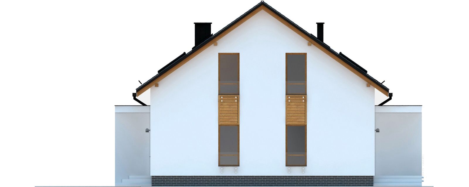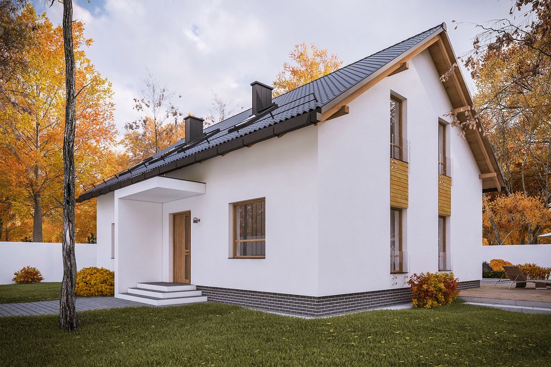Graficzne opracowanie rzutów poglądowych widocznych na karcie projektu zostało wykonane przez Extradom.pl. Prezentowane przez Extradom.pl wizualizacje wykonane zostały przez autora projektu i należy poczytywać je jedynie za przykład i propozycję wykończenia, wizję architektoniczną autora projektu. Ostateczne wykończenie budynku może nastąpić na wiele sposobów. Szczegółowe rozwiązania zastosowane w oferowanej dokumentacji - w tym również ilość, lokalizacje i wygląd okien, drzwi, kominów - mogą w niewielkim stopniu różnić się od prezentowanej wizualizacji budynku.