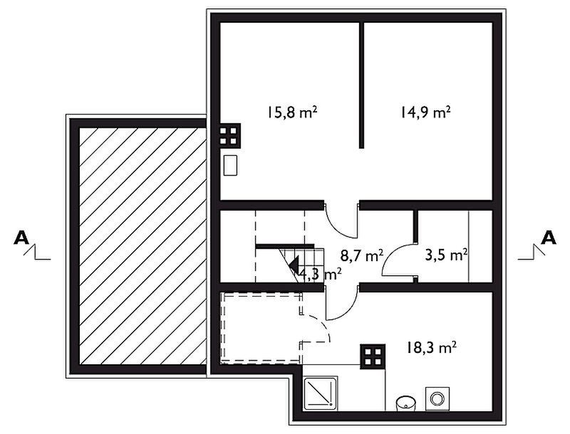 Technologia i konstrukcja: murowana – ceramika. Ściany zewnętrzne: cegła kratówka + styropian. Ściany wewnętrzne: cegła kratówka lub dziurawka. Strop: żelbetowy. Konstrukcja dachu: drewniana, jętkowa. Rodzaj schodów: żelbetowe, płytowe. Typ ogrzewania: kocioł na gaz. Aneks na paliwo stałe: na zamówienie. Pokrycie dachu: dachówka ceramiczna. Elewacja: tynk cienkowarstwowy, płytki klinkierowe, deski.