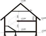 Fundamenty: bezpośrednie, na ławach i stopach fundamentowych. Ściany zewnętrzne: bloczki z bet. komórkowego - 24 cm + styropian TERMO ORGANIKA typ Fasada 12 cm. Ściany wewnętrzne: bloczki z bet. komórkowego - 24 cm (działowe - 12 cm) + działowe z płyty G-K na ruszcie (poddasze). Strop: gęstożebrowy Teriva I oraz żelbetowy monolityczny gr. 14, 18 i 24 cm.. Elewacje: tynk - System Platinum firmy TERMO ORGANIKA, płytki klinkierowe lub ceramiczne. Pokrycie dachu: dachówka cementowa. Konstrukcja dachu: drewniana o układzie konstrukcyjnym mieszanym. Schody wewnętrzne: drewniane wg indywidualnego projektu. Ogrzewanie: kocioł gazowy kondensacyjny Projekt zgodny z wymaganiami WT2017..