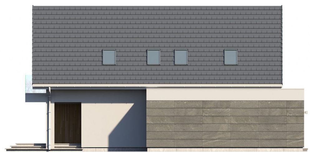 Graficzne opracowanie rzutów poglądowych widocznych na karcie projektu zostało wykonane przez Extradom.pl. Prezentowane przez Extradom.pl wizualizacje wykonane zostały przez autora projektu i należy poczytywać je jedynie za przykład i propozycję wykończenia, wizję architektoniczną autora projektu. Ostateczne wykończenie budynku może nastąpić na wiele sposobów. Szczegółowe rozwiązania zastosowane w oferowanej dokumentacji - w tym również ilość, lokalizacje i wygląd okien, drzwi, kominów - mogą w niewielkim stopniu różnić się od prezentowanej wizualizacji budynku.