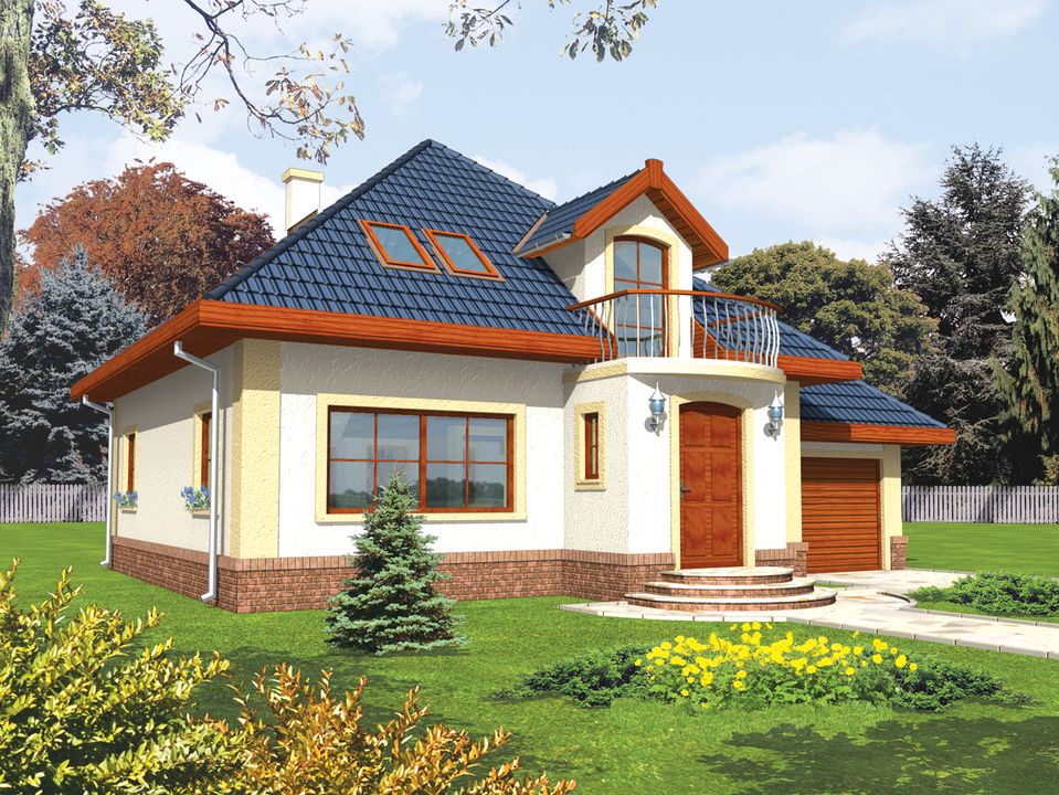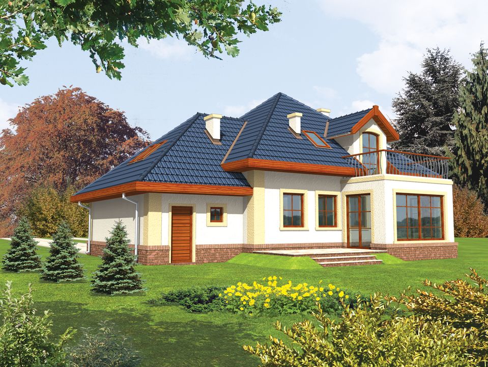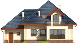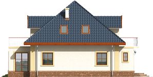 Graficzne opracowanie rzutów poglądowych widocznych na karcie projektu zostało wykonane przez Extradom.pl. Prezentowane przez Extradom.pl wizualizacje wykonane zostały przez autora projektu i należy poczytywać je jedynie za przykład i propozycję wykończenia, wizję architektoniczną autora projektu. Ostateczne wykończenie budynku może nastąpić na wiele sposobów. Szczegółowe rozwiązania zastosowane w oferowanej dokumentacji - w tym również ilość, lokalizacje i wygląd okien, drzwi, kominów - mogą w niewielkim stopniu różnić się od prezentowanej wizualizacji budynku.