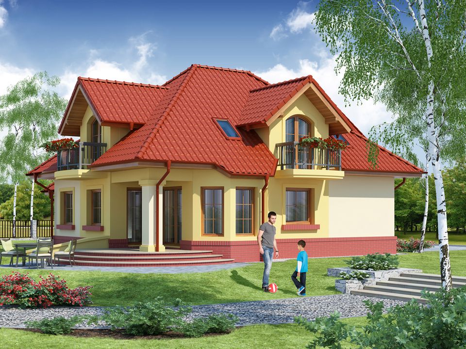 Projekt domu Dandys 1 WRW1030 od razu wpadł w oko mi i żonie. Spodobał nam się układ wewnętrzny domu i jego wygląd zewnętrzny, dlatego wydał nam się odpowiedni. Budowa przebiegła bardzo sprawnie, nie było żadnych problemów z projektem domu Dandys 1 WRW1030 . Mieszkamy już od 2,5 roku, ogrzewamy się piecem na ekogroszek. Spalanie jest bardzo zadowalające, w okresie od września do kwietnia, wynosi jakieś 3 tony. Zdecydowałem się jednak na wprowadzenie zmian, postanowiłem zamknąć kuchnię, ponieważ w projekcie była ona otwarta i połączona aneksem. A mi takie rozwiązanie nie odpowiadało. I jeszcze jedna zmiana, jaką wprowadziłem, to podwyższenie o dwa pustaki ścianki kolankowej. Bardzo mi to pomogło, bo teraz pokoje na poddaszu są większe i bardziej ustawne. Front domu jest na południu, dzięki temu pozostała część jest usytuowana zgodnie ze stronami świata. Dzięki temu położeniu, nie narzekamy na złe doświetlenie domu. . Rozkład domu wydaje mi się dobry. Jak na razie mamy sporo miejsca, możemy zapraszać rodzinę i znajomych. Warunki mieszkaniowe pod tym względem są wzorowe. Jestem zadowolony ze swojego wyboru, jak na razie nie mam żadnych zastrzerzeń. Projekt domu parterowego z poddaszem Dandys 1 WRW1030, uważam za bardzo trafny wybór.