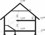 Fundamenty: bezpośrednie, na ławach i stopach fundamentowych. Ściany zewnętrzne: bloczki z bet. komórkowego - 24 cm + styropian TERMO ORGANIKA typ Fasada 18 cm. Ściany wewnętrzne: bloczki z bet. komórkowego (odm. 600) - 24 cm (działowe - 12 cm) + działowe z płyty G-K na ruszcie (poddasze). Strop: gęstożebrowy Teriva E I oraz strop żelbetowy o grubościach 20cm I 16cm (nad garażem). Elewacje: tynk - firmy TERMO ORGANIKA. Pokrycie dachu: dachówka cementowa. Konstrukcja dachu: drewniana o układzie konstrukcyjnym mieszanym. Schody wewnętrzne: żelbetowe monolityczne zabiegowe. Ogrzewanie: kocioł gazowy jednofunkcyjny kondensacyjny. W projekcie dodatkowo zastosowano wentylację mechaniczną - rekuperację. Projekt jest zgodny z wymaganiami WT2021, a konstrukcja była obliczana zgodnie z eurokodami.