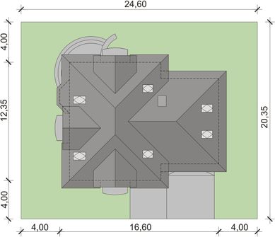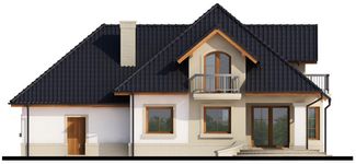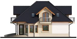 Graficzne opracowanie rzutów poglądowych widocznych na karcie projektu zostało wykonane przez Extradom.pl. Prezentowane przez Extradom.pl wizualizacje wykonane zostały przez autora projektu i należy poczytywać je jedynie za przykład i propozycję wykończenia, wizję architektoniczną autora projektu. Ostateczne wykończenie budynku może nastąpić na wiele sposobów. Szczegółowe rozwiązania zastosowane w oferowanej dokumentacji - w tym również ilość, lokalizacje i wygląd okien, drzwi, kominów - mogą w niewielkim stopniu różnić się od prezentowanej wizualizacji budynku.