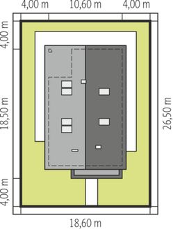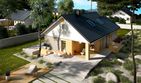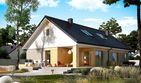 Graficzne opracowanie rzutów poglądowych widocznych na karcie projektu zostało wykonane przez Extradom.pl. Prezentowane przez Extradom.pl wizualizacje wykonane zostały przez autora projektu i należy poczytywać je jedynie za przykład i propozycję wykończenia, wizję architektoniczną autora projektu. Ostateczne wykończenie budynku może nastąpić na wiele sposobów. Szczegółowe rozwiązania zastosowane w oferowanej dokumentacji - w tym również ilość, lokalizacje i wygląd okien, drzwi, kominów - mogą w niewielkim stopniu różnić się od prezentowanej wizualizacji budynku.