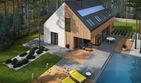 Ściany zewnętrzne: murowane, dwuwarstwowe, bloczki betonu komórkowego firmy H+H 24 cm, ocieplenie styropian Termo Organika 20 cm. Ściany wewnętrzne: nośne i działowe murowane, bloczki betonu komórkowego firmy H+H 24 cm i 12 cm. Strop i stropodach nad garażem: strop gęstożebrowy Teriva i pas dolny wiązara stanowi konstrukcję, nad garażem stropodach pełny. Dach: więźba dachowa w systemie prefabrykacji drewnianej, ocieplenie wełna mineralna Isover 30 cm, blacha na rąbek stojący Classic firmy Ruukki. Inne: schody wewnętrzne drewniane. Rozwiązania instalacyjne energooszczędne. Ogrzewanie: pompa ciepła firmy Viessmann, rozprowadzenie ciepła: ogrzewanie podłogowe firmy Purmo. Wentylacja: wentylacja mechaniczna nawiewno-wywiewna z odzyskiem ciepła firmy Viessmann. OZE: system solarny firmy Viessmann. Elewacje: tynk cienkowarstwowy mineralny w kolorze białym TO-PA001 z palety firmy Termo Organika, okładzina drewniana w pionowym układzie desek. Stolarka: aluminiowa firmy Reynaers Aluminium lub drewniano-aluminiowa INNOVIEW firmy Fakro, drzwi wejściowe i brama garażowa firmy Hörmann. Okna połaciowe: rozwiązania technologiczne i wyłaz dachowy firmy FAKRO, okno do dachów płaskich firmy FAKRO. Otoczenie: kostka betonowa i płyty tarasowe firmy Libet, system tarasowy ProDeck - deska kompozytowa Terra w kolorze orzech, meble ogrodowe firmy B&B Italia.
