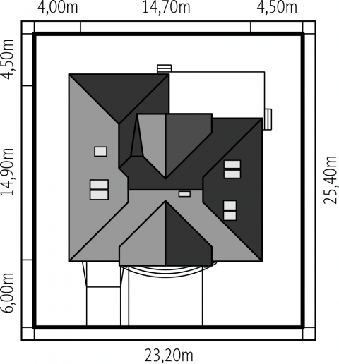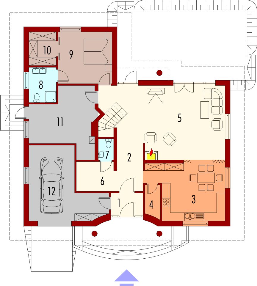 Graficzne opracowanie rzutów poglądowych widocznych na karcie projektu zostało wykonane przez Extradom.pl. Prezentowane przez Extradom.pl wizualizacje wykonane zostały przez autora projektu i należy poczytywać je jedynie za przykład i propozycję wykończenia, wizję architektoniczną autora projektu. Ostateczne wykończenie budynku może nastąpić na wiele sposobów. Szczegółowe rozwiązania zastosowane w oferowanej dokumentacji - w tym również ilość, lokalizacje i wygląd okien, drzwi, kominów - mogą w niewielkim stopniu różnić się od prezentowanej wizualizacji budynku.