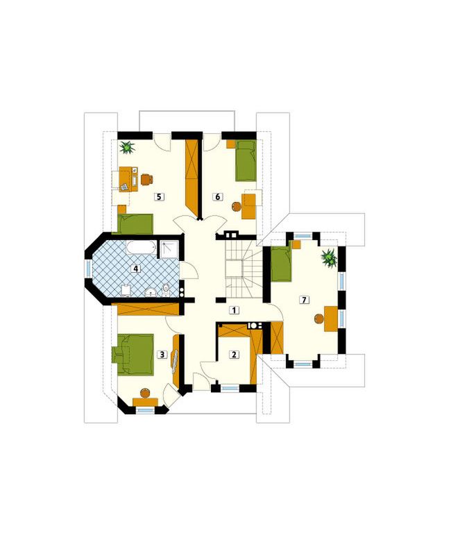 Graficzne opracowanie rzutów poglądowych widocznych na karcie projektu zostało wykonane przez Extradom.pl. Prezentowane przez Extradom.pl wizualizacje wykonane zostały przez autora projektu i należy poczytywać je jedynie za przykład i propozycję wykończenia, wizję architektoniczną autora projektu. Ostateczne wykończenie budynku może nastąpić na wiele sposobów. Szczegółowe rozwiązania zastosowane w oferowanej dokumentacji - w tym również ilość, lokalizacje i wygląd okien, drzwi, kominów - mogą w niewielkim stopniu różnić się od prezentowanej wizualizacji budynku.