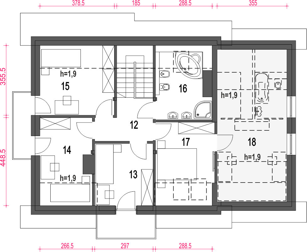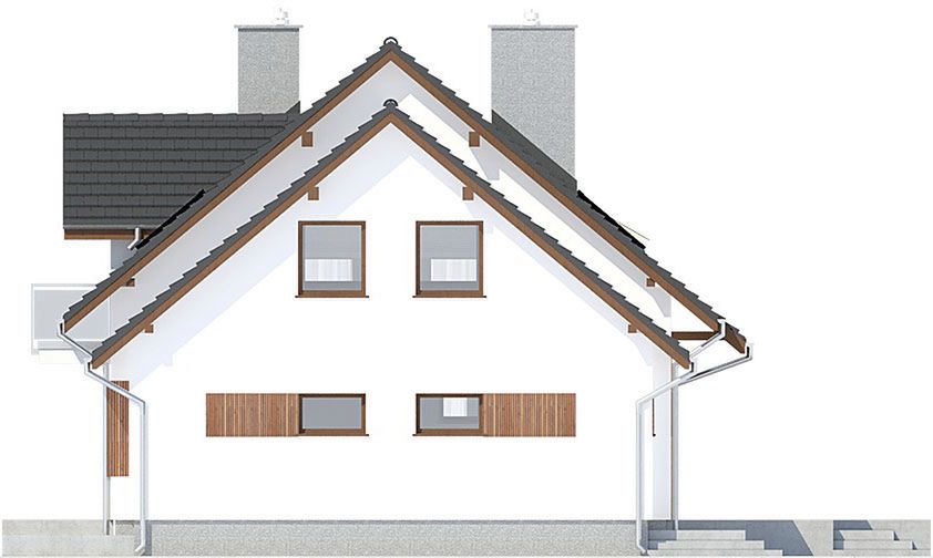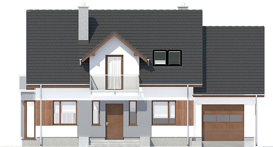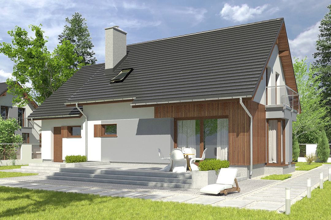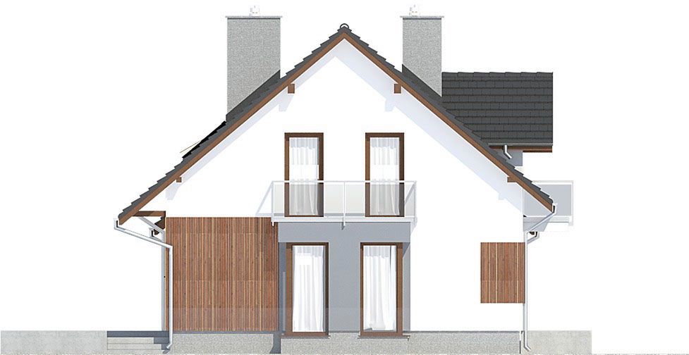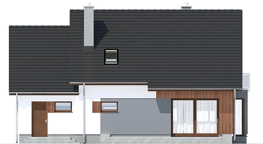 Graficzne opracowanie rzutów poglądowych widocznych na karcie projektu zostało wykonane przez Extradom.pl. Prezentowane przez Extradom.pl wizualizacje wykonane zostały przez autora projektu i należy poczytywać je jedynie za przykład i propozycję wykończenia, wizję architektoniczną autora projektu. Ostateczne wykończenie budynku może nastąpić na wiele sposobów. Szczegółowe rozwiązania zastosowane w oferowanej dokumentacji - w tym również ilość, lokalizacje i wygląd okien, drzwi, kominów - mogą w niewielkim stopniu różnić się od prezentowanej wizualizacji budynku.