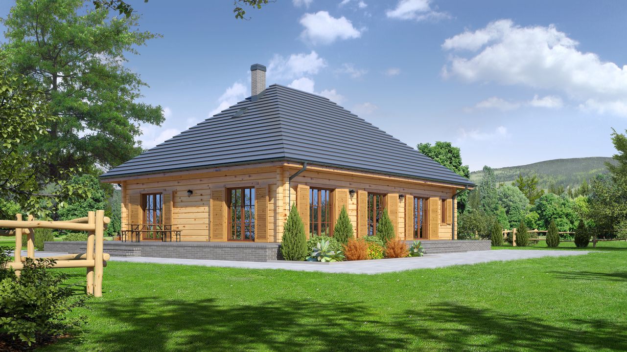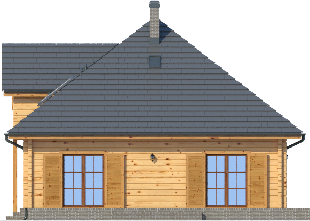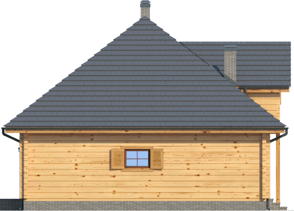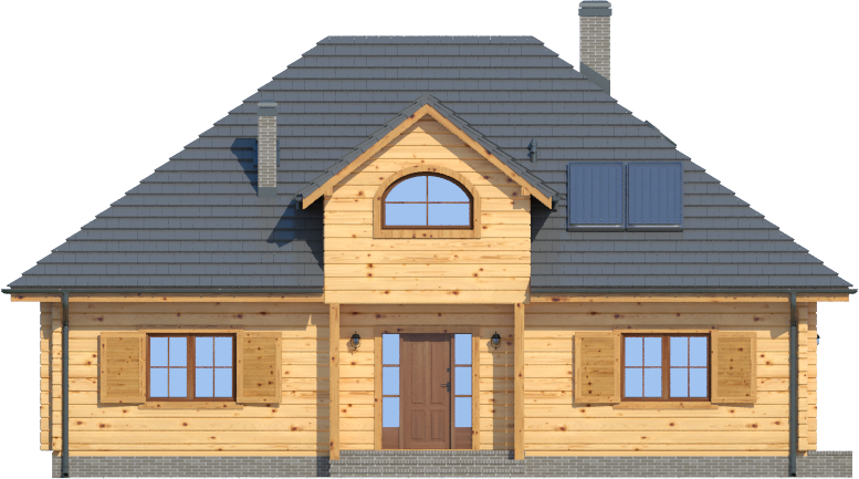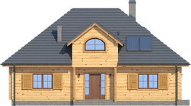 Wysokość ścianki kolankowej: 0.48 m. Ilość drewna na więźbę: 13.46 m³. Strop: drewniany. Pokrycie dachu: dachówka gontopodobna Gerard Corona. Ściany zewnętrzne: płazy drewniane + wełna mineralna + deska. Ściany wewnętrzne: płazy drewniane. Typ ogrzewania: kocioł gazowy. Instalacje dodatkowe: instalacja solarna.