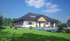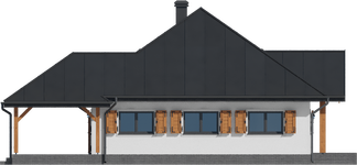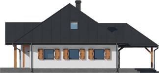 Graficzne opracowanie rzutów poglądowych widocznych na karcie projektu zostało wykonane przez Extradom.pl. Prezentowane przez Extradom.pl wizualizacje wykonane zostały przez autora projektu i należy poczytywać je jedynie za przykład i propozycję wykończenia, wizję architektoniczną autora projektu. Ostateczne wykończenie budynku może nastąpić na wiele sposobów. Szczegółowe rozwiązania zastosowane w oferowanej dokumentacji - w tym również ilość, lokalizacje i wygląd okien, drzwi, kominów - mogą w niewielkim stopniu różnić się od prezentowanej wizualizacji budynku.