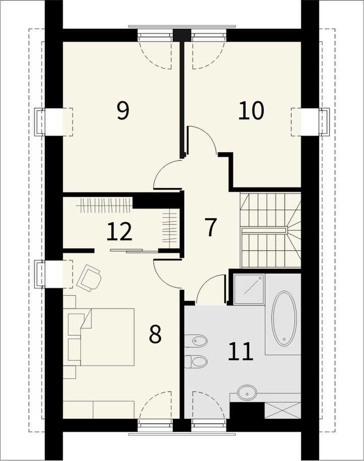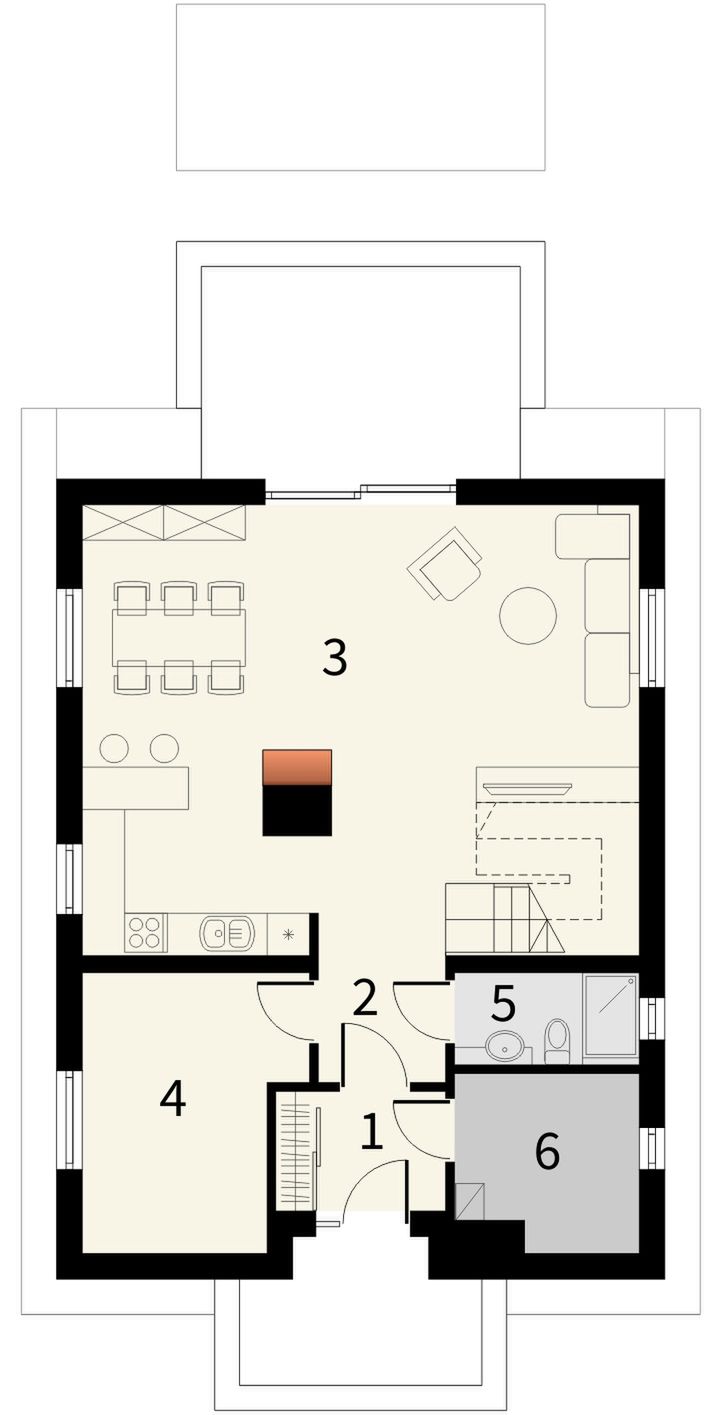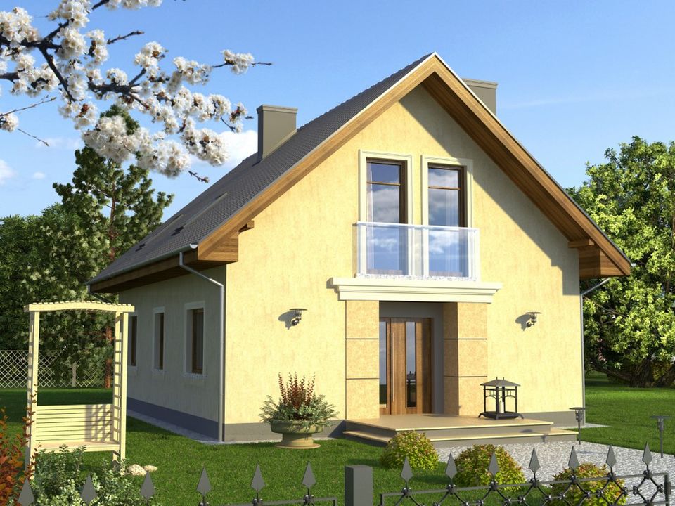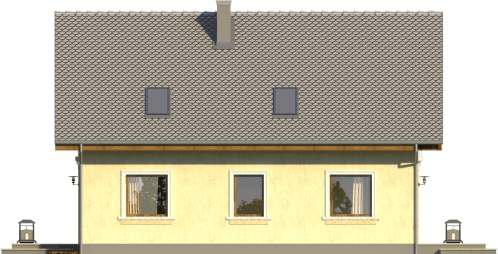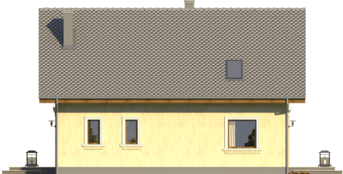Graficzne opracowanie rzutów poglądowych widocznych na karcie projektu zostało wykonane przez Extradom.pl. Prezentowane przez Extradom.pl wizualizacje wykonane zostały przez autora projektu i należy poczytywać je jedynie za przykład i propozycję wykończenia, wizję architektoniczną autora projektu. Ostateczne wykończenie budynku może nastąpić na wiele sposobów. Szczegółowe rozwiązania zastosowane w oferowanej dokumentacji - w tym również ilość, lokalizacje i wygląd okien, drzwi, kominów - mogą w niewielkim stopniu różnić się od prezentowanej wizualizacji budynku.