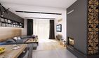 Graficzne opracowanie rzutów poglądowych widocznych na karcie projektu zostało wykonane przez Extradom.pl. Prezentowane przez Extradom.pl wizualizacje wykonane zostały przez autora projektu i należy poczytywać je jedynie za przykład i propozycję wykończenia, wizję architektoniczną autora projektu. Ostateczne wykończenie budynku może nastąpić na wiele sposobów. Szczegółowe rozwiązania zastosowane w oferowanej dokumentacji - w tym również ilość, lokalizacje i wygląd okien, drzwi, kominów - mogą w niewielkim stopniu różnić się od prezentowanej wizualizacji budynku.