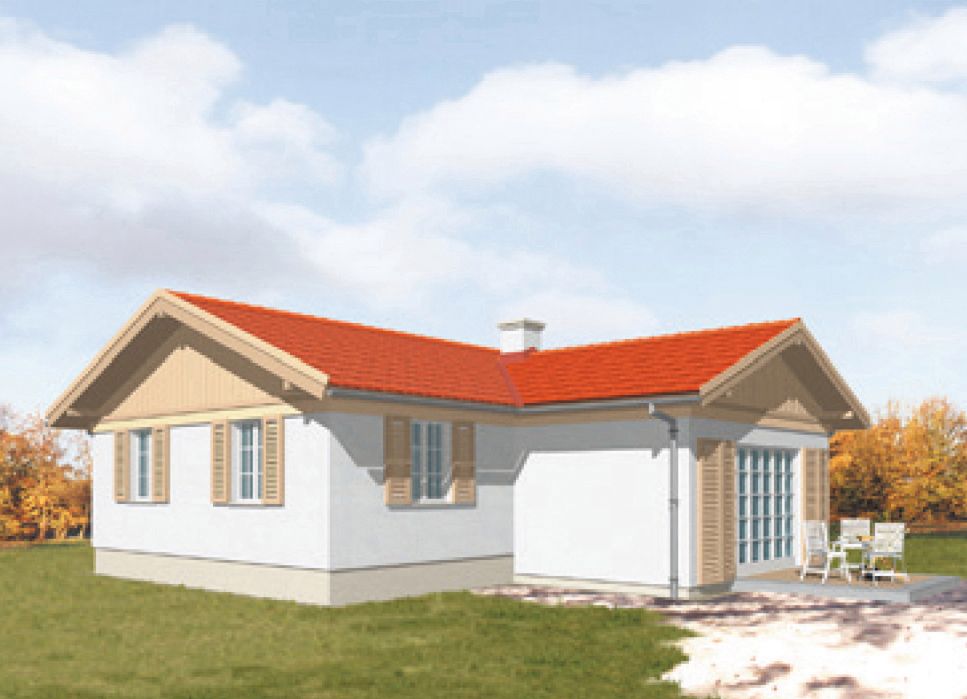 Ściany zewnętrzne dwuwarstwowe: cegła SILKA + wełna mineralna + tynk. Ściany wewnętrzne: cegła SILKA i/lub płyty na ruszcie stalowym, wygłuszone wełną mineralną. Strop: drewniany. Więźba dachowa: tradycyjna drewniana. Poszycie dachu: dachówka cementowa. Stolarka: drewniana lub PCV. Instalacja centralnego ogrzewania: kocioł dwufunkcyjny + grzejniki.