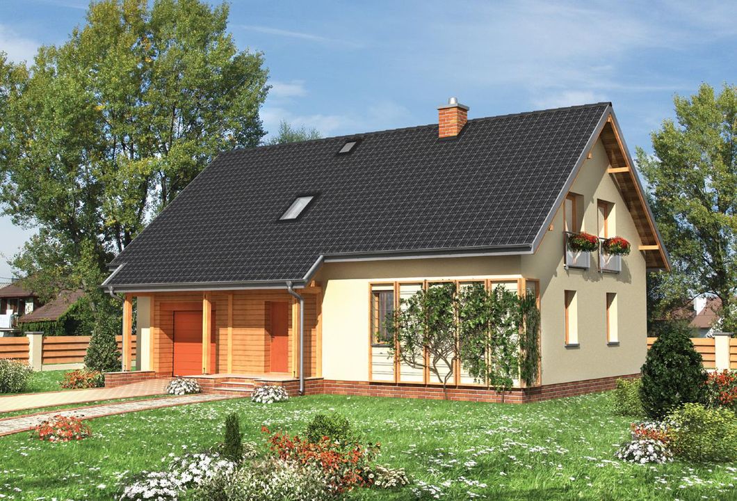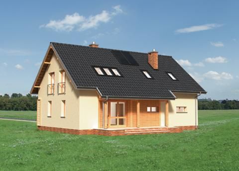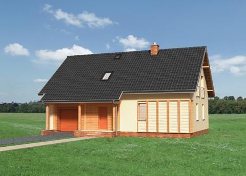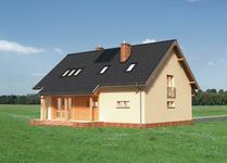 Graficzne opracowanie rzutów poglądowych widocznych na karcie projektu zostało wykonane przez Extradom.pl. Prezentowane przez Extradom.pl wizualizacje wykonane zostały przez autora projektu i należy poczytywać je jedynie za przykład i propozycję wykończenia, wizję architektoniczną autora projektu. Ostateczne wykończenie budynku może nastąpić na wiele sposobów. Szczegółowe rozwiązania zastosowane w oferowanej dokumentacji - w tym również ilość, lokalizacje i wygląd okien, drzwi, kominów - mogą w niewielkim stopniu różnić się od prezentowanej wizualizacji budynku.