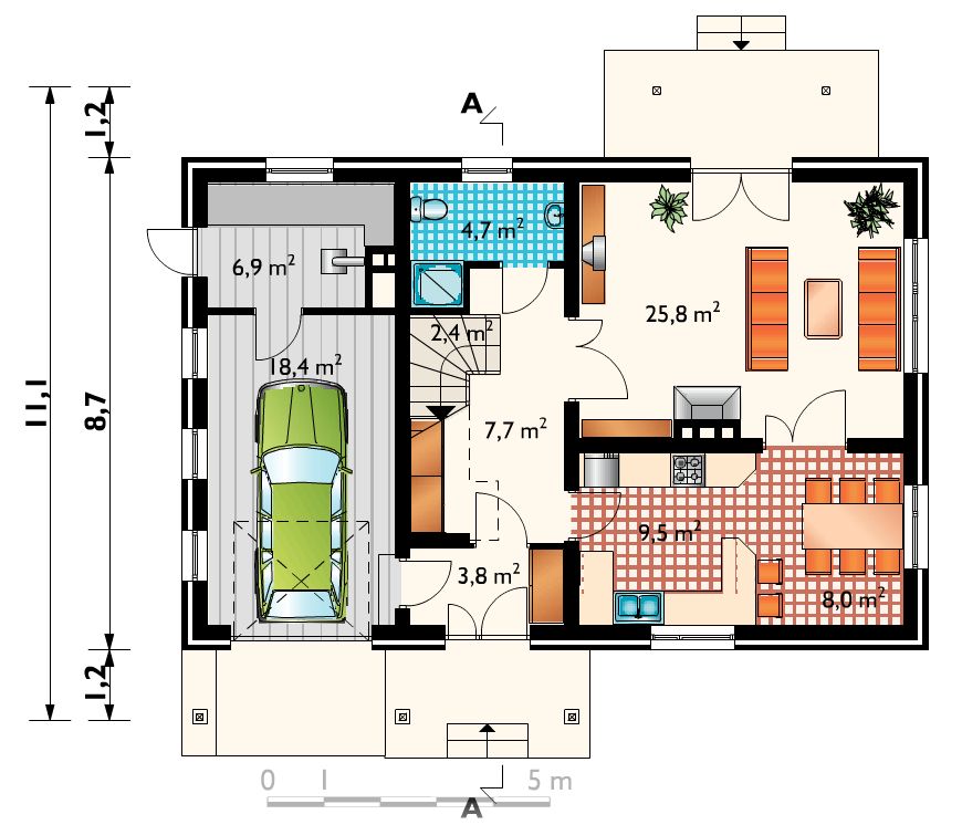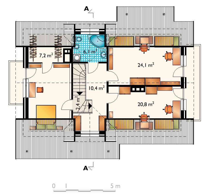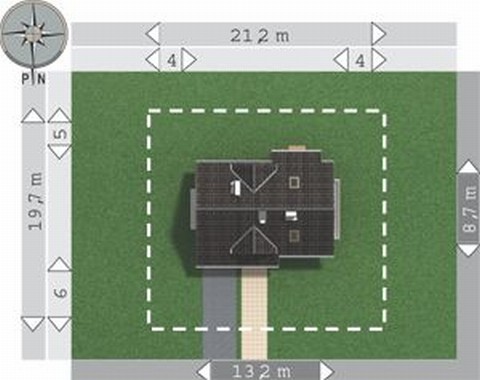 Graficzne opracowanie rzutów poglądowych widocznych na karcie projektu zostało wykonane przez Extradom.pl. Prezentowane przez Extradom.pl wizualizacje wykonane zostały przez autora projektu i należy poczytywać je jedynie za przykład i propozycję wykończenia, wizję architektoniczną autora projektu. Ostateczne wykończenie budynku może nastąpić na wiele sposobów. Szczegółowe rozwiązania zastosowane w oferowanej dokumentacji - w tym również ilość, lokalizacje i wygląd okien, drzwi, kominów - mogą w niewielkim stopniu różnić się od prezentowanej wizualizacji budynku.