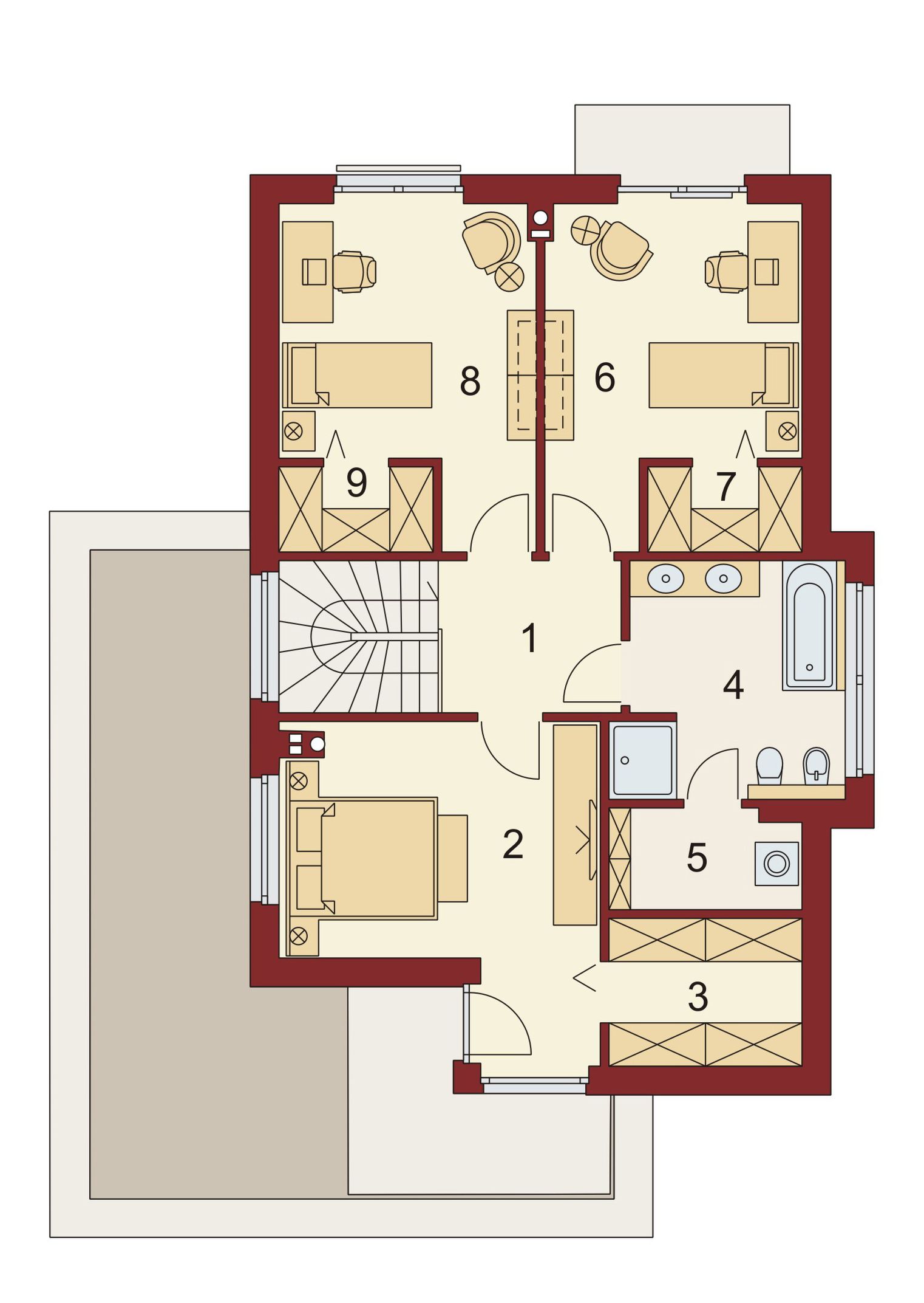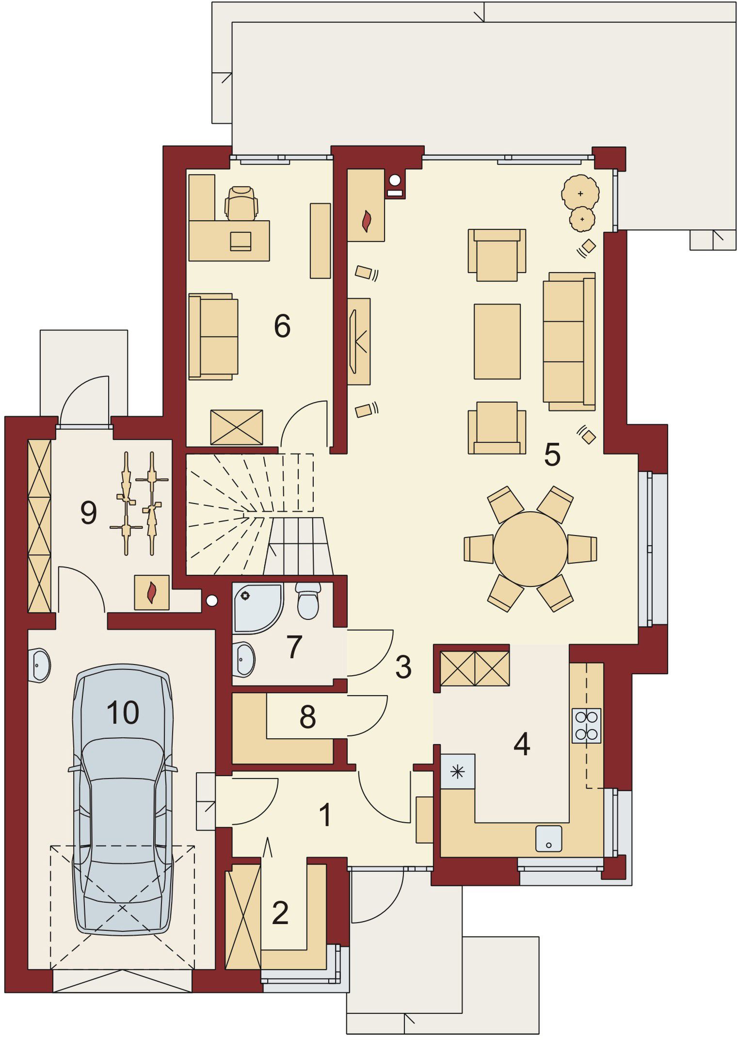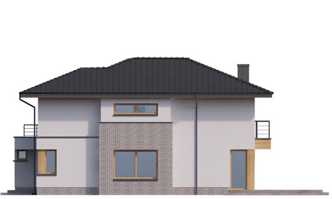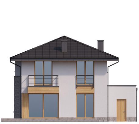 Graficzne opracowanie rzutów poglądowych widocznych na karcie projektu zostało wykonane przez Extradom.pl. Prezentowane przez Extradom.pl wizualizacje wykonane zostały przez autora projektu i należy poczytywać je jedynie za przykład i propozycję wykończenia, wizję architektoniczną autora projektu. Ostateczne wykończenie budynku może nastąpić na wiele sposobów. Szczegółowe rozwiązania zastosowane w oferowanej dokumentacji - w tym również ilość, lokalizacje i wygląd okien, drzwi, kominów - mogą w niewielkim stopniu różnić się od prezentowanej wizualizacji budynku.