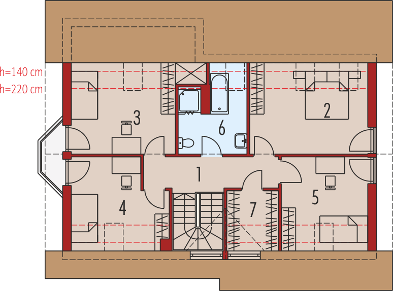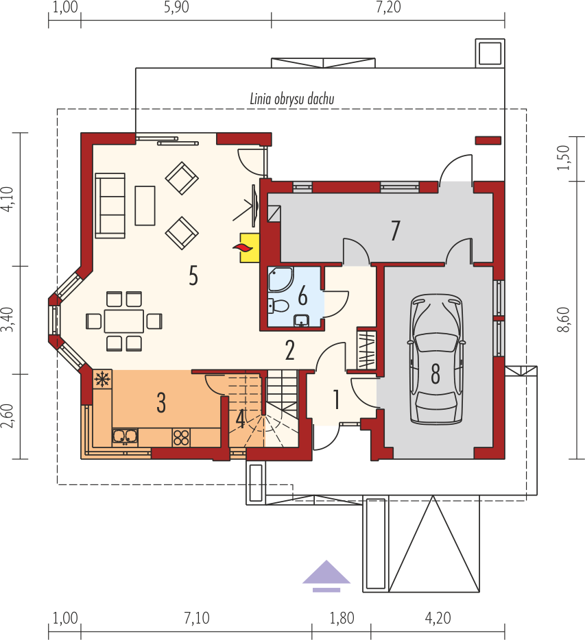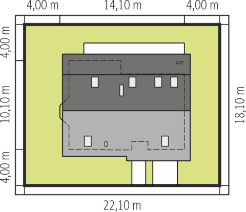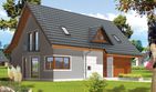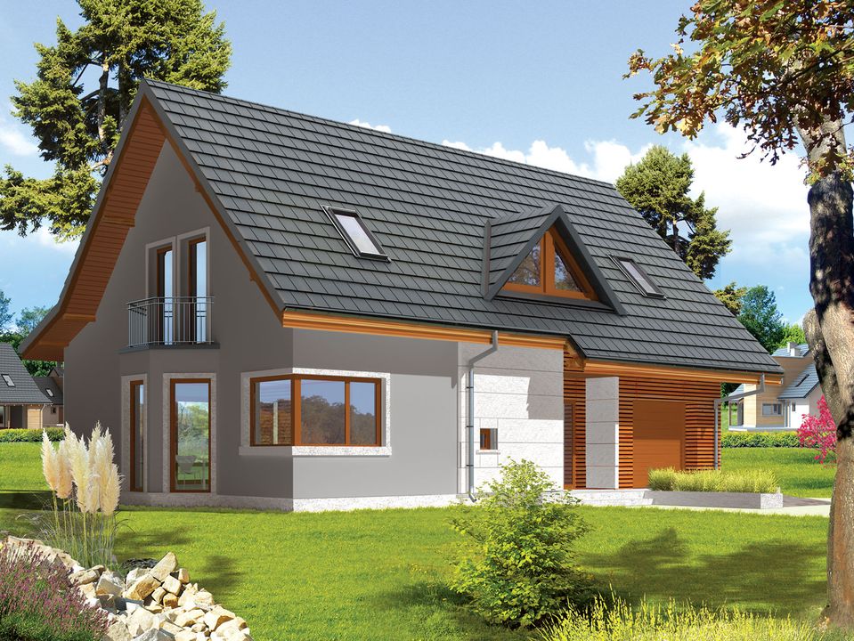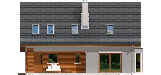 Graficzne opracowanie rzutów poglądowych widocznych na karcie projektu zostało wykonane przez Extradom.pl. Prezentowane przez Extradom.pl wizualizacje wykonane zostały przez autora projektu i należy poczytywać je jedynie za przykład i propozycję wykończenia, wizję architektoniczną autora projektu. Ostateczne wykończenie budynku może nastąpić na wiele sposobów. Szczegółowe rozwiązania zastosowane w oferowanej dokumentacji - w tym również ilość, lokalizacje i wygląd okien, drzwi, kominów - mogą w niewielkim stopniu różnić się od prezentowanej wizualizacji budynku.