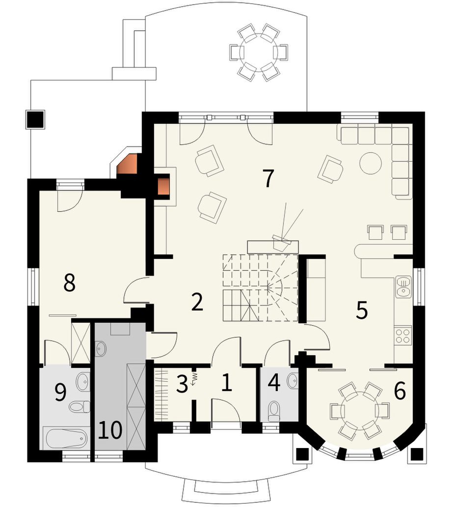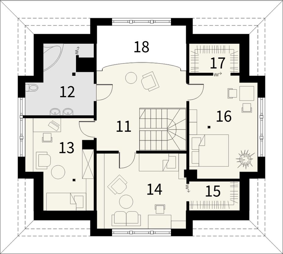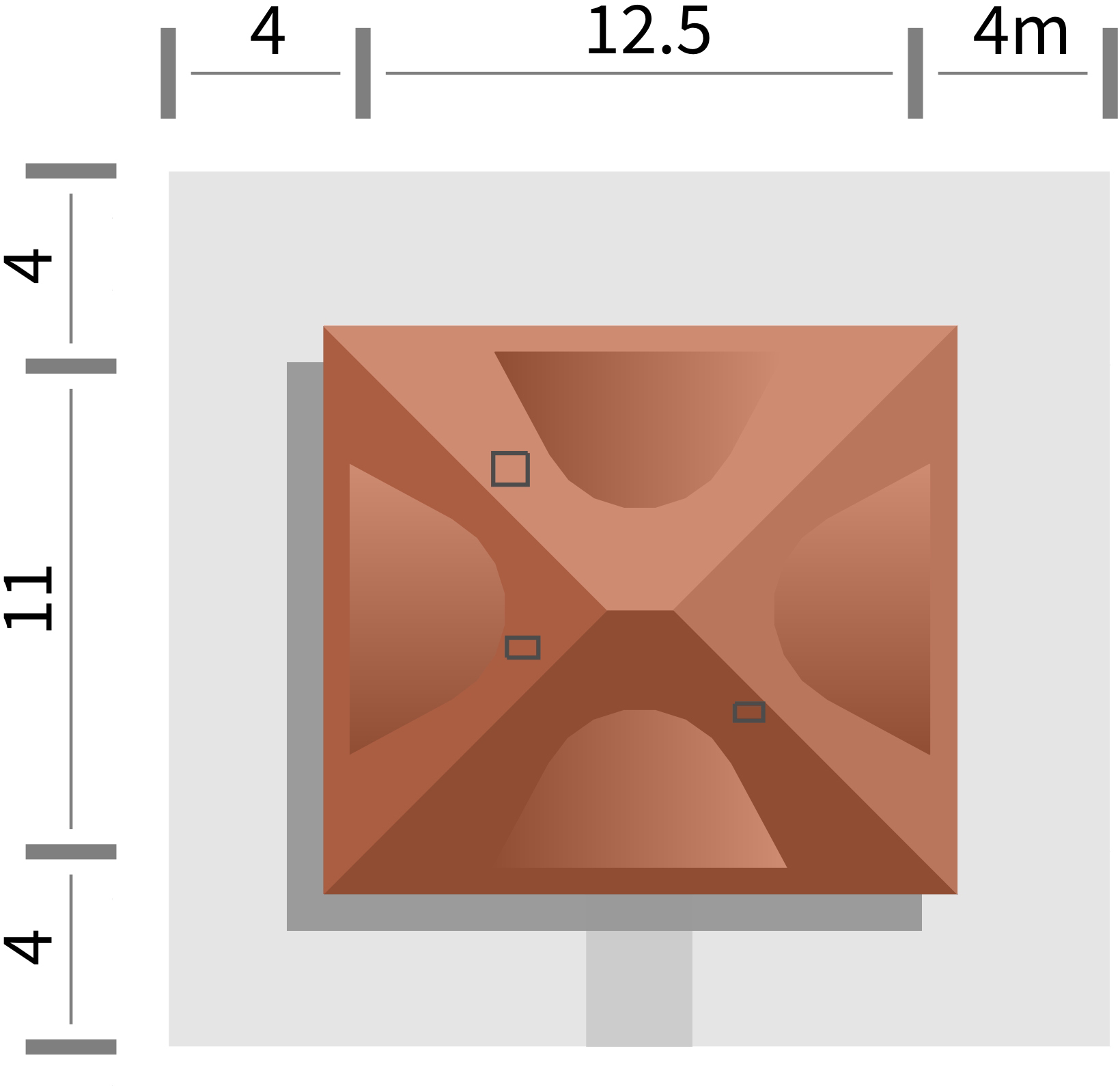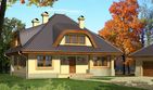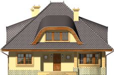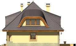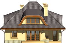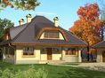 Graficzne opracowanie rzutów poglądowych widocznych na karcie projektu zostało wykonane przez Extradom.pl. Prezentowane przez Extradom.pl wizualizacje wykonane zostały przez autora projektu i należy poczytywać je jedynie za przykład i propozycję wykończenia, wizję architektoniczną autora projektu. Ostateczne wykończenie budynku może nastąpić na wiele sposobów. Szczegółowe rozwiązania zastosowane w oferowanej dokumentacji - w tym również ilość, lokalizacje i wygląd okien, drzwi, kominów - mogą w niewielkim stopniu różnić się od prezentowanej wizualizacji budynku.