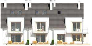 Graficzne opracowanie rzutów poglądowych widocznych na karcie projektu zostało wykonane przez Extradom.pl. Prezentowane przez Extradom.pl wizualizacje wykonane zostały przez autora projektu i należy poczytywać je jedynie za przykład i propozycję wykończenia, wizję architektoniczną autora projektu. Ostateczne wykończenie budynku może nastąpić na wiele sposobów. Szczegółowe rozwiązania zastosowane w oferowanej dokumentacji - w tym również ilość, lokalizacje i wygląd okien, drzwi, kominów - mogą w niewielkim stopniu różnić się od prezentowanej wizualizacji budynku.