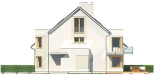 Graficzne opracowanie rzutów poglądowych widocznych na karcie projektu zostało wykonane przez Extradom.pl. Prezentowane przez Extradom.pl wizualizacje wykonane zostały przez autora projektu i należy poczytywać je jedynie za przykład i propozycję wykończenia, wizję architektoniczną autora projektu. Ostateczne wykończenie budynku może nastąpić na wiele sposobów. Szczegółowe rozwiązania zastosowane w oferowanej dokumentacji - w tym również ilość, lokalizacje i wygląd okien, drzwi, kominów - mogą w niewielkim stopniu różnić się od prezentowanej wizualizacji budynku.
