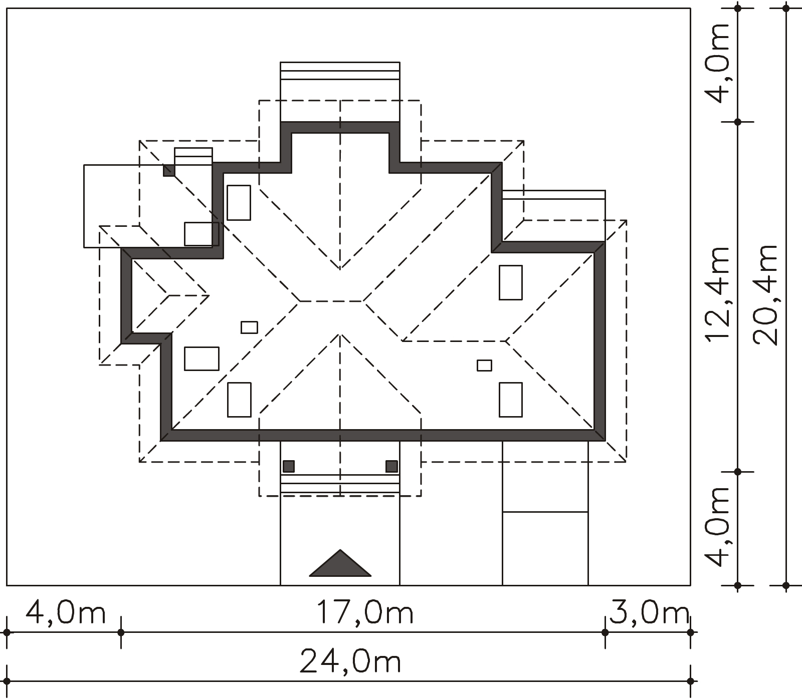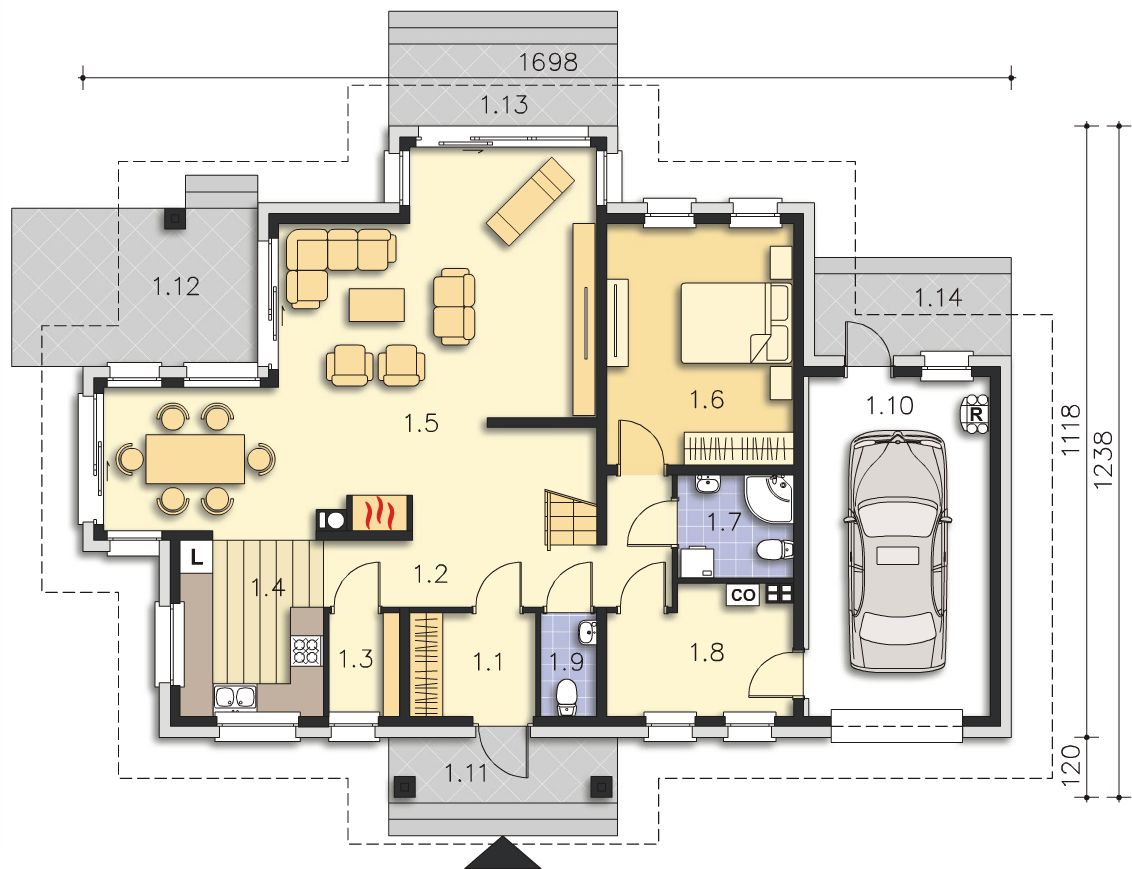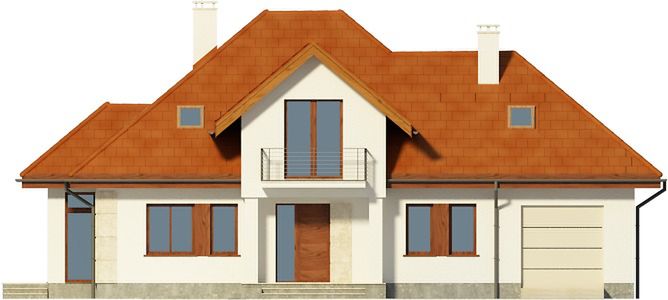 Graficzne opracowanie rzutów poglądowych widocznych na karcie projektu zostało wykonane przez Extradom.pl. Prezentowane przez Extradom.pl wizualizacje wykonane zostały przez autora projektu i należy poczytywać je jedynie za przykład i propozycję wykończenia, wizję architektoniczną autora projektu. Ostateczne wykończenie budynku może nastąpić na wiele sposobów. Szczegółowe rozwiązania zastosowane w oferowanej dokumentacji - w tym również ilość, lokalizacje i wygląd okien, drzwi, kominów - mogą w niewielkim stopniu różnić się od prezentowanej wizualizacji budynku.