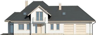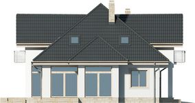 Graficzne opracowanie rzutów poglądowych widocznych na karcie projektu zostało wykonane przez Extradom.pl. Prezentowane przez Extradom.pl wizualizacje wykonane zostały przez autora projektu i należy poczytywać je jedynie za przykład i propozycję wykończenia, wizję architektoniczną autora projektu. Ostateczne wykończenie budynku może nastąpić na wiele sposobów. Szczegółowe rozwiązania zastosowane w oferowanej dokumentacji - w tym również ilość, lokalizacje i wygląd okien, drzwi, kominów - mogą w niewielkim stopniu różnić się od prezentowanej wizualizacji budynku.
