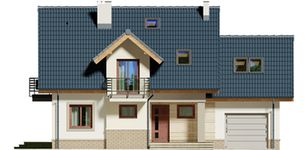 Graficzne opracowanie rzutów poglądowych widocznych na karcie projektu zostało wykonane przez Extradom.pl. Prezentowane przez Extradom.pl wizualizacje wykonane zostały przez autora projektu i należy poczytywać je jedynie za przykład i propozycję wykończenia, wizję architektoniczną autora projektu. Ostateczne wykończenie budynku może nastąpić na wiele sposobów. Szczegółowe rozwiązania zastosowane w oferowanej dokumentacji - w tym również ilość, lokalizacje i wygląd okien, drzwi, kominów - mogą w niewielkim stopniu różnić się od prezentowanej wizualizacji budynku.