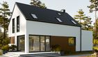 Graficzne opracowanie rzutów poglądowych widocznych na karcie projektu zostało wykonane przez Extradom.pl. Prezentowane przez Extradom.pl wizualizacje wykonane zostały przez autora projektu i należy poczytywać je jedynie za przykład i propozycję wykończenia, wizję architektoniczną autora projektu. Ostateczne wykończenie budynku może nastąpić na wiele sposobów. Szczegółowe rozwiązania zastosowane w oferowanej dokumentacji - w tym również ilość, lokalizacje i wygląd okien, drzwi, kominów - mogą w niewielkim stopniu różnić się od prezentowanej wizualizacji budynku.
