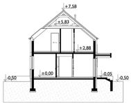 Graficzne opracowanie rzutów poglądowych widocznych na karcie projektu zostało wykonane przez Extradom.pl. Prezentowane przez Extradom.pl wizualizacje wykonane zostały przez autora projektu i należy poczytywać je jedynie za przykład i propozycję wykończenia, wizję architektoniczną autora projektu. Ostateczne wykończenie budynku może nastąpić na wiele sposobów. Szczegółowe rozwiązania zastosowane w oferowanej dokumentacji - w tym również ilość, lokalizacje i wygląd okien, drzwi, kominów - mogą w niewielkim stopniu różnić się od prezentowanej wizualizacji budynku.
