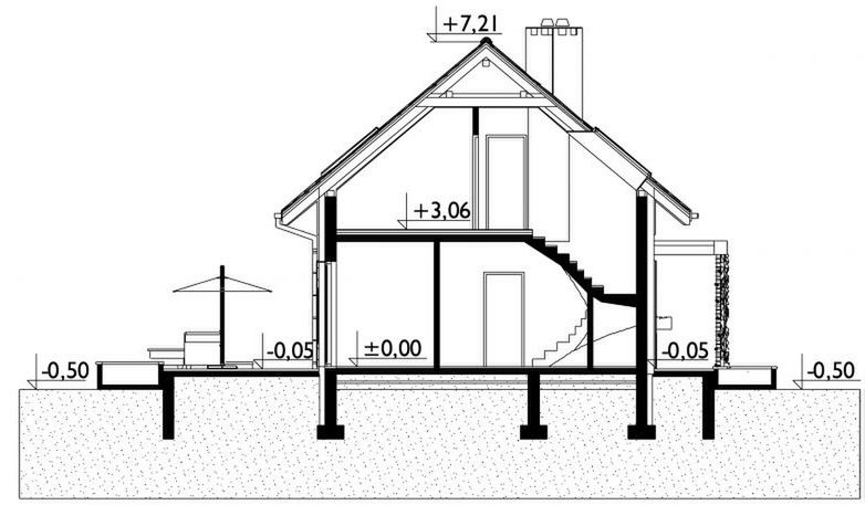 Graficzne opracowanie rzutów poglądowych widocznych na karcie projektu zostało wykonane przez Extradom.pl. Prezentowane przez Extradom.pl wizualizacje wykonane zostały przez autora projektu i należy poczytywać je jedynie za przykład i propozycję wykończenia, wizję architektoniczną autora projektu. Ostateczne wykończenie budynku może nastąpić na wiele sposobów. Szczegółowe rozwiązania zastosowane w oferowanej dokumentacji - w tym również ilość, lokalizacje i wygląd okien, drzwi, kominów - mogą w niewielkim stopniu różnić się od prezentowanej wizualizacji budynku.