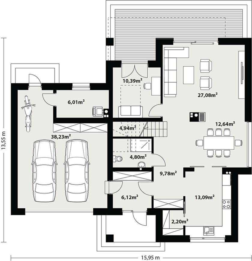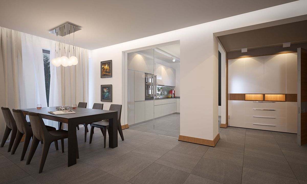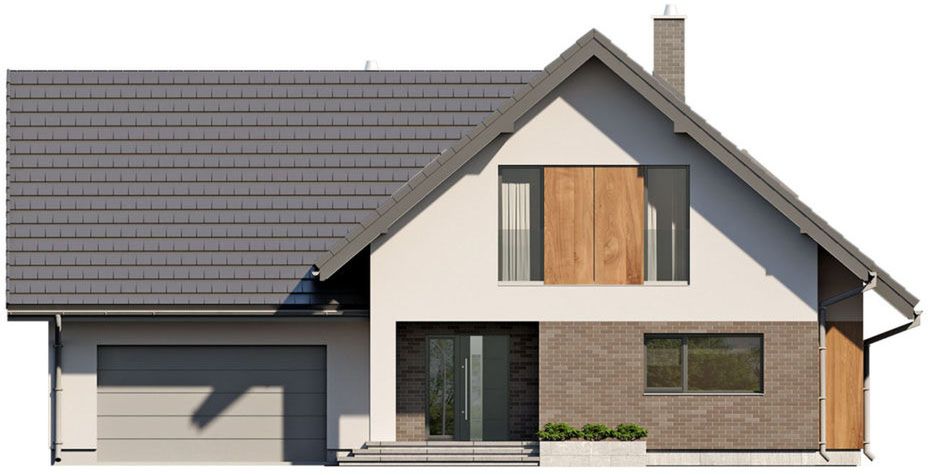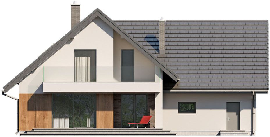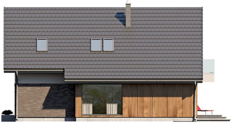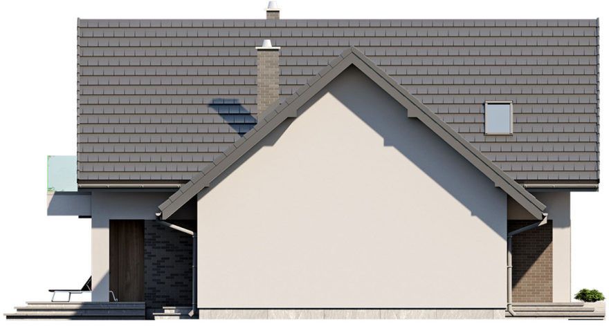 Graficzne opracowanie rzutów poglądowych widocznych na karcie projektu zostało wykonane przez Extradom.pl. Prezentowane przez Extradom.pl wizualizacje wykonane zostały przez autora projektu i należy poczytywać je jedynie za przykład i propozycję wykończenia, wizję architektoniczną autora projektu. Ostateczne wykończenie budynku może nastąpić na wiele sposobów. Szczegółowe rozwiązania zastosowane w oferowanej dokumentacji - w tym również ilość, lokalizacje i wygląd okien, drzwi, kominów - mogą w niewielkim stopniu różnić się od prezentowanej wizualizacji budynku.