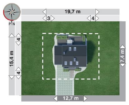 Graficzne opracowanie rzutów poglądowych widocznych na karcie projektu zostało wykonane przez Extradom.pl. Prezentowane przez Extradom.pl wizualizacje wykonane zostały przez autora projektu i należy poczytywać je jedynie za przykład i propozycję wykończenia, wizję architektoniczną autora projektu. Ostateczne wykończenie budynku może nastąpić na wiele sposobów. Szczegółowe rozwiązania zastosowane w oferowanej dokumentacji - w tym również ilość, lokalizacje i wygląd okien, drzwi, kominów - mogą w niewielkim stopniu różnić się od prezentowanej wizualizacji budynku.