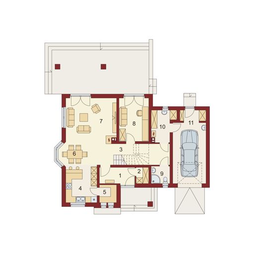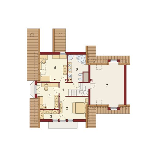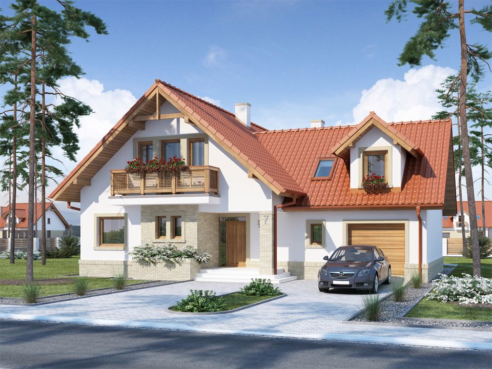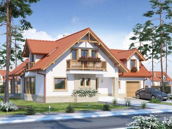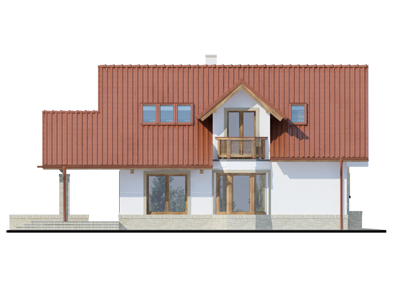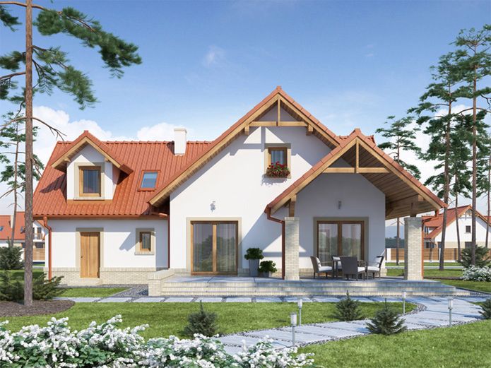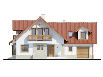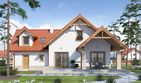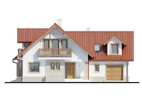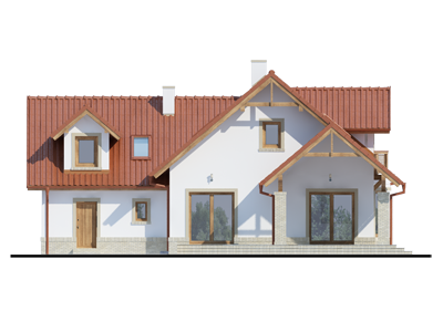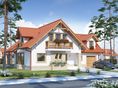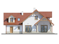 Graficzne opracowanie rzutów poglądowych widocznych na karcie projektu zostało wykonane przez Extradom.pl. Prezentowane przez Extradom.pl wizualizacje wykonane zostały przez autora projektu i należy poczytywać je jedynie za przykład i propozycję wykończenia, wizję architektoniczną autora projektu. Ostateczne wykończenie budynku może nastąpić na wiele sposobów. Szczegółowe rozwiązania zastosowane w oferowanej dokumentacji - w tym również ilość, lokalizacje i wygląd okien, drzwi, kominów - mogą w niewielkim stopniu różnić się od prezentowanej wizualizacji budynku.