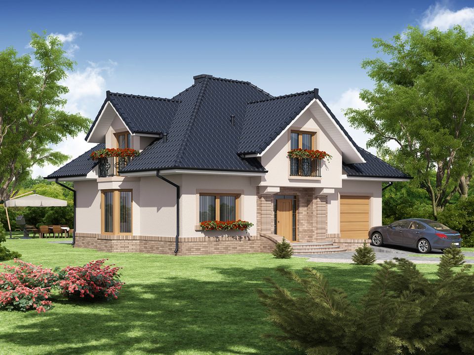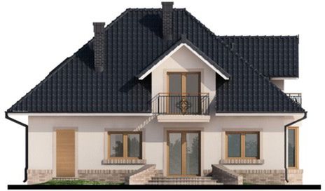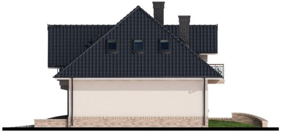 Graficzne opracowanie rzutów poglądowych widocznych na karcie projektu zostało wykonane przez Extradom.pl. Prezentowane przez Extradom.pl wizualizacje wykonane zostały przez autora projektu i należy poczytywać je jedynie za przykład i propozycję wykończenia, wizję architektoniczną autora projektu. Ostateczne wykończenie budynku może nastąpić na wiele sposobów. Szczegółowe rozwiązania zastosowane w oferowanej dokumentacji - w tym również ilość, lokalizacje i wygląd okien, drzwi, kominów - mogą w niewielkim stopniu różnić się od prezentowanej wizualizacji budynku.
