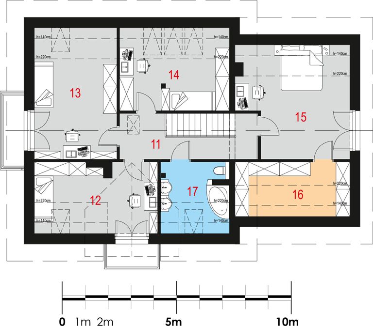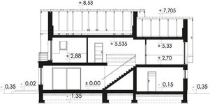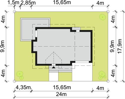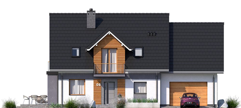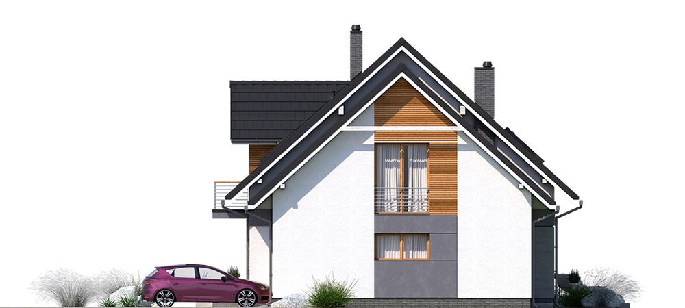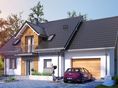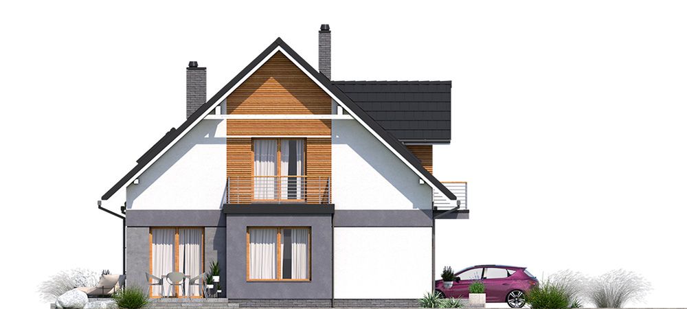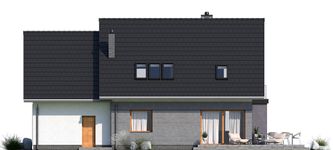 Graficzne opracowanie rzutów poglądowych widocznych na karcie projektu zostało wykonane przez Extradom.pl. Prezentowane przez Extradom.pl wizualizacje wykonane zostały przez autora projektu i należy poczytywać je jedynie za przykład i propozycję wykończenia, wizję architektoniczną autora projektu. Ostateczne wykończenie budynku może nastąpić na wiele sposobów. Szczegółowe rozwiązania zastosowane w oferowanej dokumentacji - w tym również ilość, lokalizacje i wygląd okien, drzwi, kominów - mogą w niewielkim stopniu różnić się od prezentowanej wizualizacji budynku.