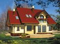 Nowy dom budowałam przede wszystkim dla siebie, ale jednocześnie chciałam mieć w nim miejsce przeznaczone dla moich dorosłych już dzieci i wnuków. Chciałam więc, aby na poddaszu znajdowało się kilka dodatkowych pokoi w razie odwiedzin rodziny. Przy wyborze odpowiedniego projektu największe znaczenie miało jednak funkcjonalne rozmieszczenie dolnej kondygnacji. Zależało mi na tym, aby na parterze oprócz części dziennej znajdowała się przestronna sypialnia z w pełni wyposażoną łazienką oraz osobna toaleta dla gości. Oglądając różne propozycje natrafiłam na projekt domu Diuna WRH1169. Na dolnym poziomie uwzględniono w nim wszystko co potrzebne do komfortowego mieszkania, a cały budynek bardzo mi się spodobał.Jestem zadowolona z przebiegu inwestycji. Zatrudnieni fachowcy ze wszystkim świetnie sobie poradzili, a prace budowlane postępowały sprawnie i zgodnie z planem. Całą realizację udało się zakończyć w naprawdę korzystnym czasie. Postawienie oraz całościowe wykończenie nowego domu zajęło tylko 1,5 roku. Budynek został wymurowany z ceramicznych pustaków marki Leier. Strop zgodnie z zaleceniami architekta tworzy konstrukcja Teriva, a dach pokryto dachówką betonową. Uważam, że oszacowany w Extra Indexie kosztorys dotyczący inwestycji na etapie stanu surowego został dobrze oszacowany. Koszty mojej Inwestycji były zbliżone i myślę, że przyszli Inwestorzy jak najbardziej mogą zmieścić się na tym etapie w sugerowanej kwocie 176 tys. zł.Projekt domu Diuna WRH1169 od początku w całości wyjątkowo przypadł mi do gustu, dlatego w zdecydowanej większości wykonałam go zgodnie z oryginalną wersją. Postanowiłam jednak zamienić tradycyjne okno w salonie na podwójne drzwi tarasowe. Ponadto, mały gabinet przy sypialni na górze wyrównałam do poziomu pozostałych pomieszczeń na poddaszu i wykorzystałam go na zrobienie garderoby. Na chwilę obecną myślę, że dobrym pomysłem byłoby wyrównanie poziom również na parterze i szczerze polecam to rozwiązanie innym Inwestorom.Układ pomieszczeń przewidziany w projekcie domu parterowego z poddaszem użytkowym Diuna WRH1169 został bardzo funkcjonalnie zaplanowany i dostrzegam w nim same plusy. Wnętrze jest komfortowe w codziennym użytkowaniu i spełnia moje oczekiwania, aczkolwiek z racji tego iż głównie użytkuję sam parter, myślę że teraz rozważyłabym dom o mniejszym metrażu. Pozdrawiam.